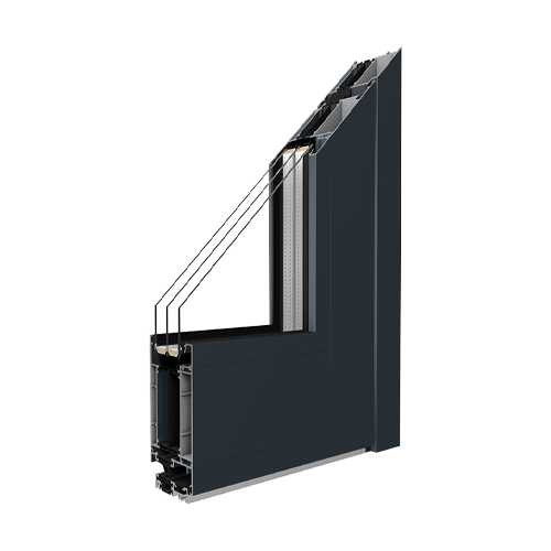 Vonkajšie hliníkové dvere vyrobené v tomto systéme sú štandardne vybavené hliníkovým prahom s tepelným mostom a vyznačujú sa nielen výnimočnými tepelnoizolačnými vlastnosťami, ale aj odolnosťou. Odporúča sa pre energeticky úsporné stavby.