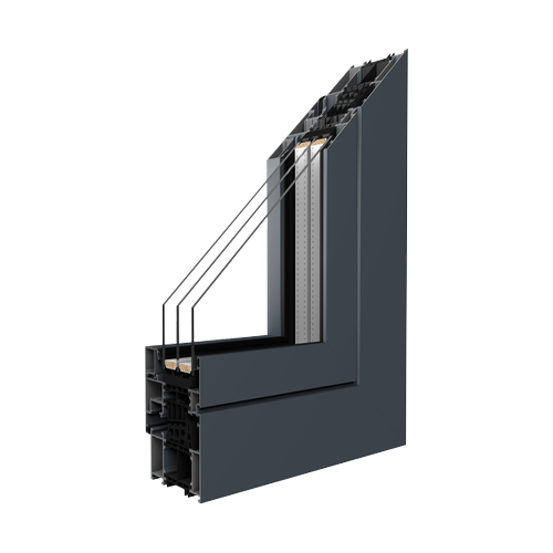 Jedinečný dizajn s možnosťou výberu hranatej zasklievacej lišty. Za vynikajúce parametre tepelnej izolácie je zodpovedná optimálna 7-komorová štruktúra profilu, špeciálne navrhnutý tesniaci systém z penového EPDM a zasklenie s vysokými tepelne izolačnými parametrami.